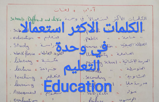الكلمات الاكثر استعمالا في وحدة التعليم education schools | english bac
